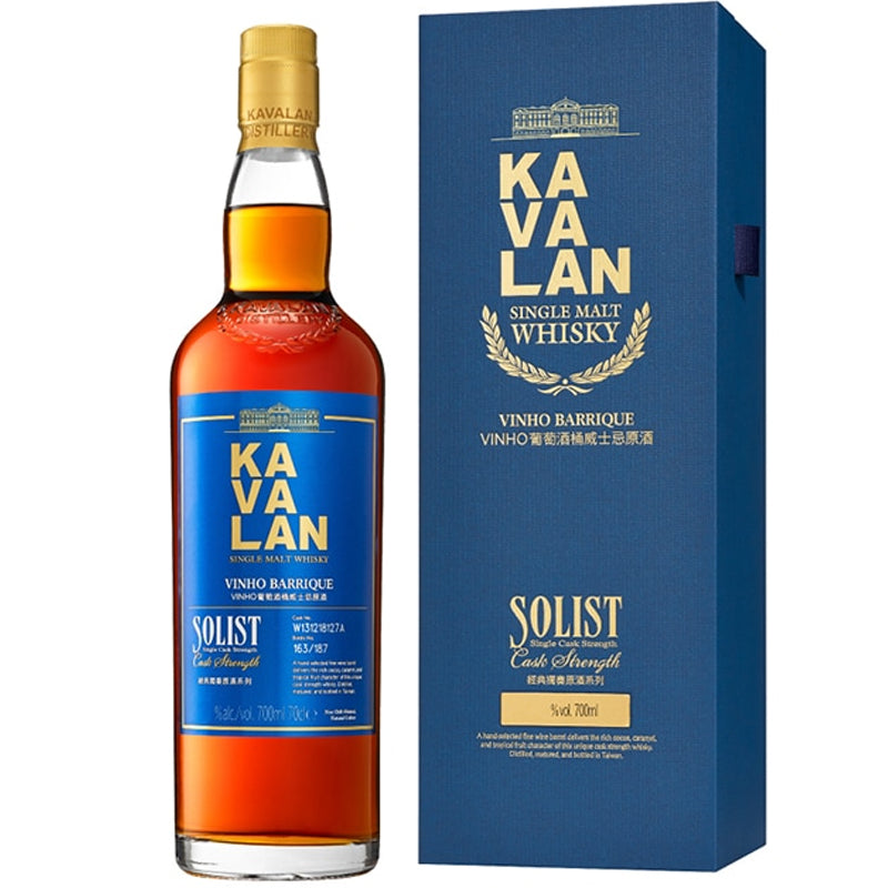 Bold, complex, and bursting with character, Kavalan Solist Vinho Barrique is one of the most celebrated releases in the Solist series. Fully matured in American oak wine barrels that have previously held both red and white wine, these casks are re-charred to draw out layers of vanilla, caramel, and rich fruit.